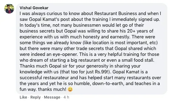 I started working with my father in a small restaurant in Mumbai, INDIA, and created a chain of restaurants of my own after which I started helping individuals passionate about owning their restaurants to achieve their dream business. Over the past 10 years, I’ve helped innumerable individuals with their Restaurant Business.